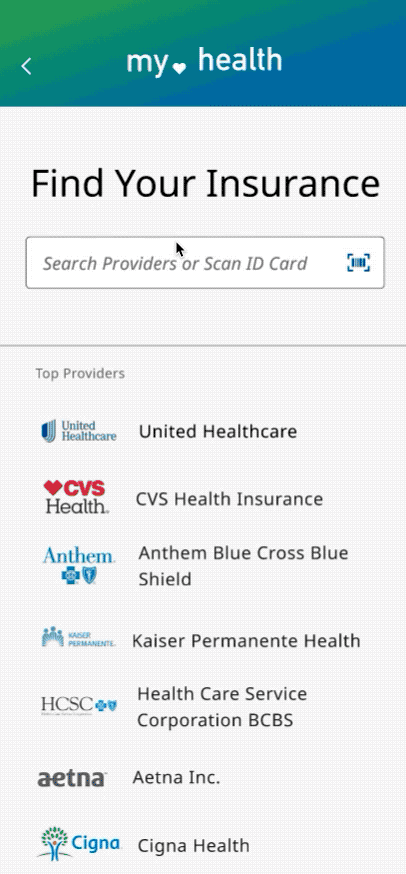 When a user is attempting to connect to their insurance provider, we recommend that search be the most prominent element on the page. Suggested insurance options are valuable but secondary.